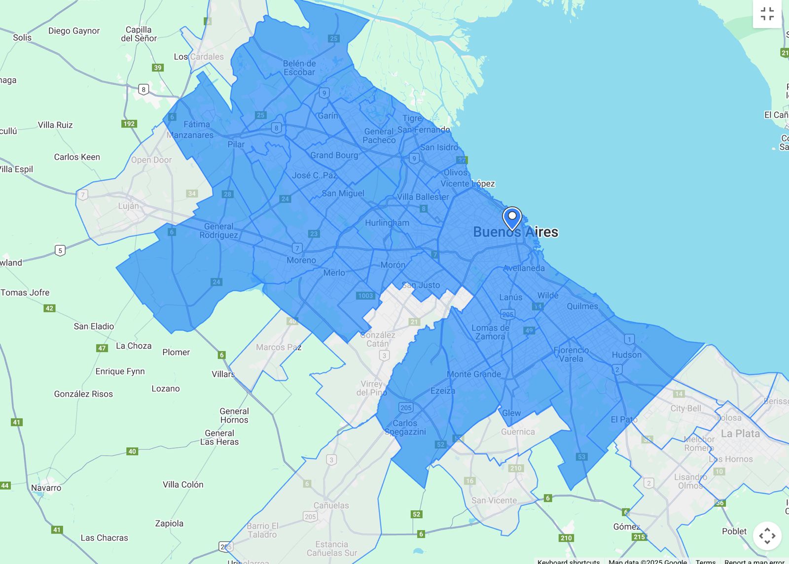 AMBA: zonas seleccionadas en el mapaResto del territorio argentino: trabajamos con Correo Argentino, garantizando que tu pedido llegue a cualquier punto del país dentro de un plazo estimado de 3 a 8 días hábiles